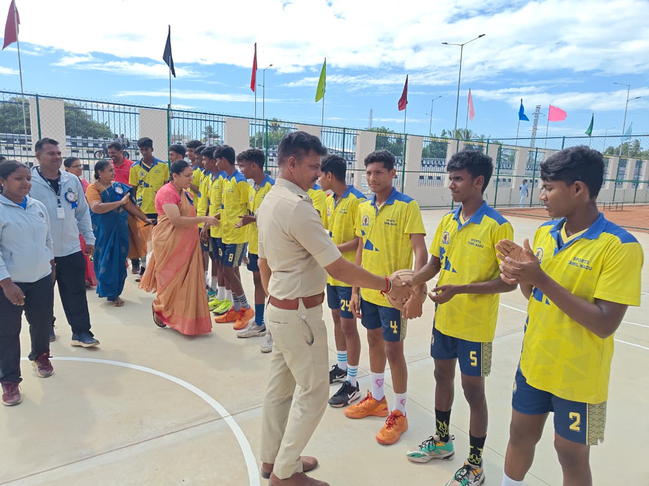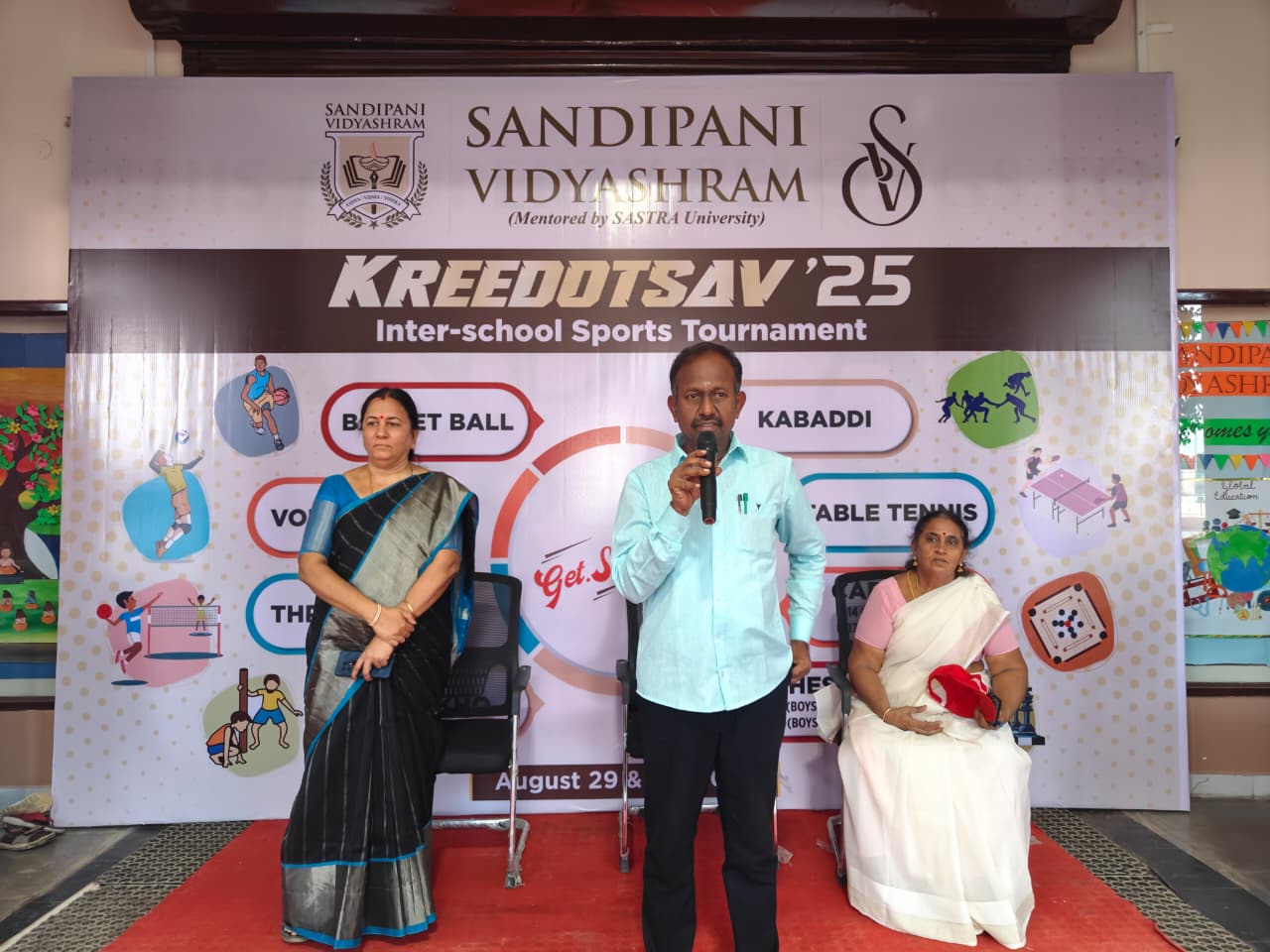 The event kicked off on August 29 with the hoisting of the national flag by the chief guest, Shri G K Raju, the Deputy Superintendent of Police, Thiruvidaimaruthur. In his inaugural address, Shri Raju motivated the students, teachers, and audience, urging them to aim high and strive for excellence. He quoted renowned Tamil poet Bharathiar, inspiring everyone to set high standards and aspire to become extraordinary achievers and leaders in life. The first day was dedicated to the preliminary rounds of various sports, including carrom, volleyball, basketball, kho-kho, throwball, chess, table tennis, and kabbadi.